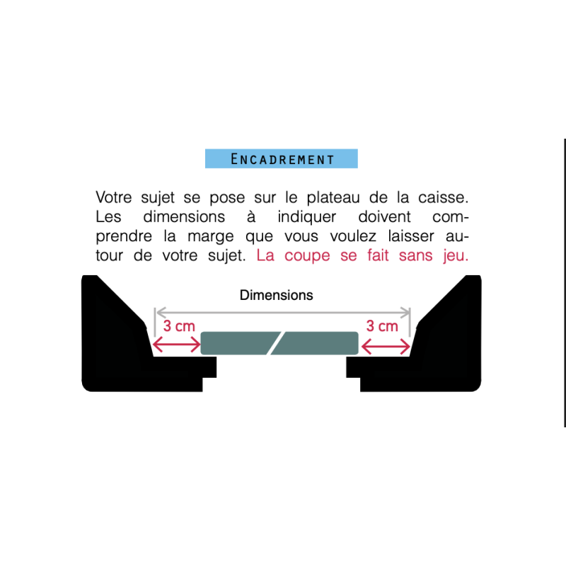 Contrairement aux caisses américaines traditionnelles, dont les bords supérieurs mesurent généralement entre 1 et 2 cm, ce modèle assume un bord supérieur large de 3 cm, offrant un rendu nettement plus structurant et moderne. Son profil imposant apporte profondeur et caractère à l’œuvre, tout en conservant l’esthétique épurée propre à la caisse américaine.
